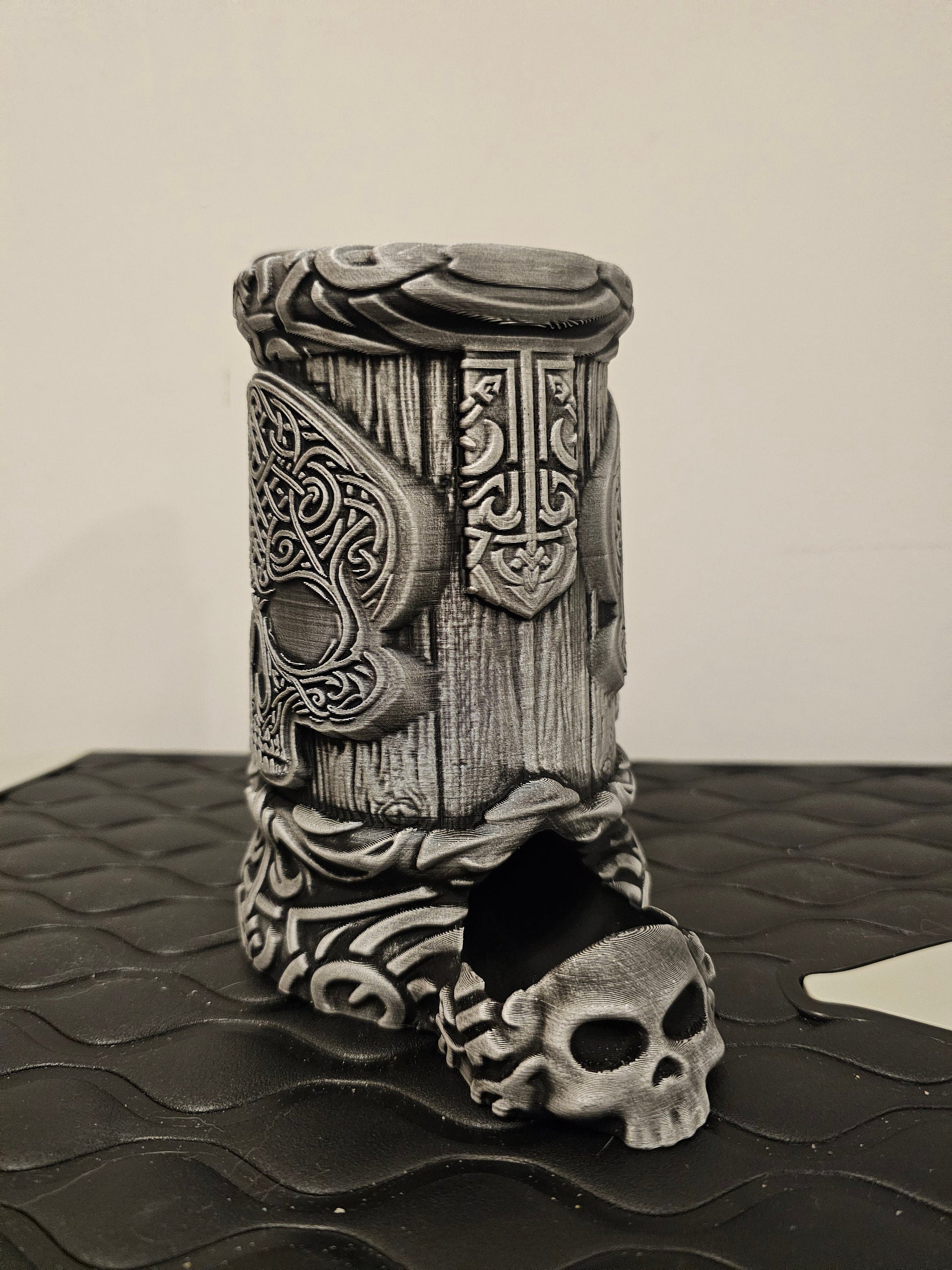 Elevate your tabletop gaming experience with our unique Celtic themed dice tower mug! This functional and stylish mug serves as both a can holder and a dice tower, providing a convenient and immersive way to enjoy your favorite games.