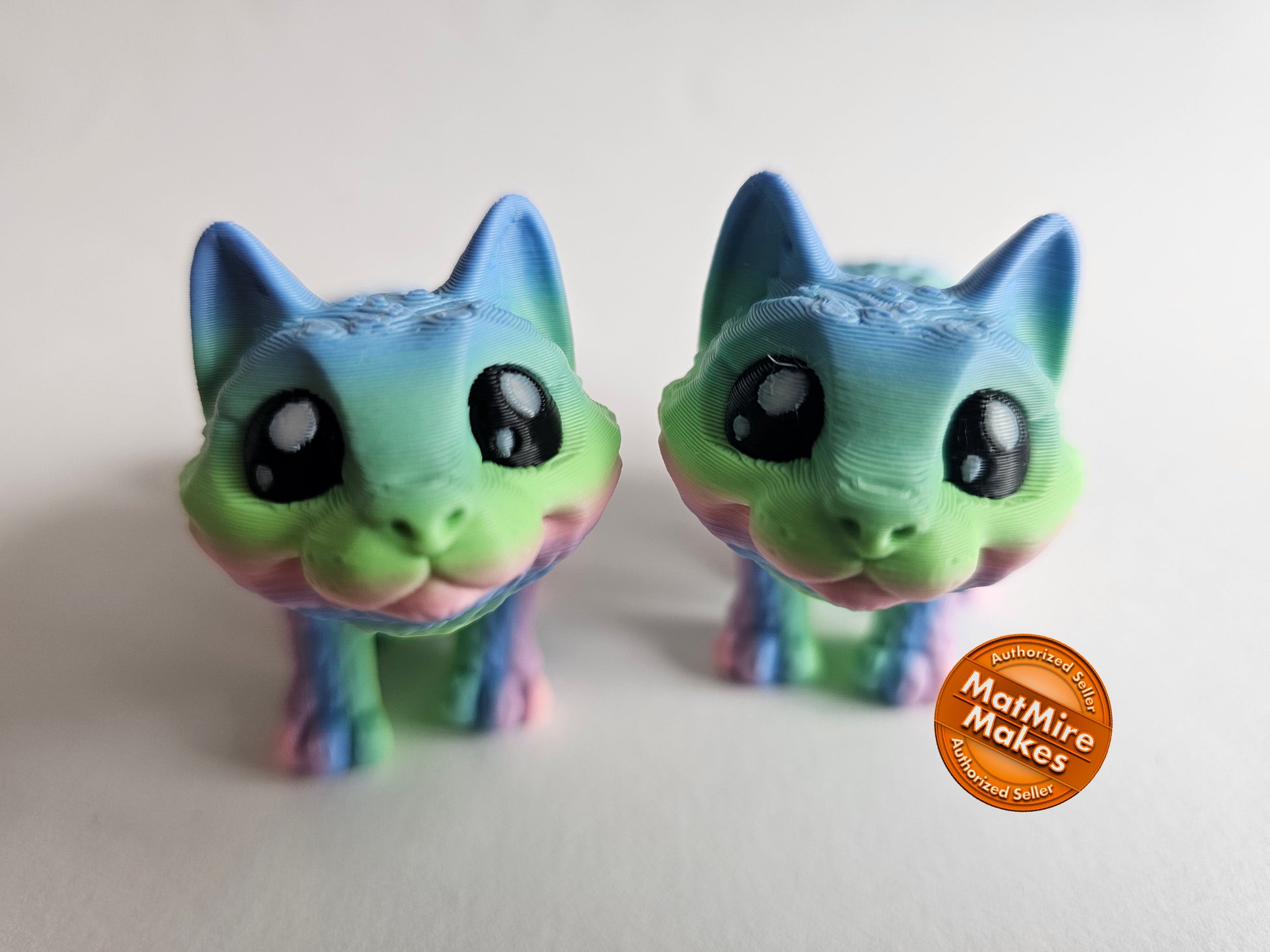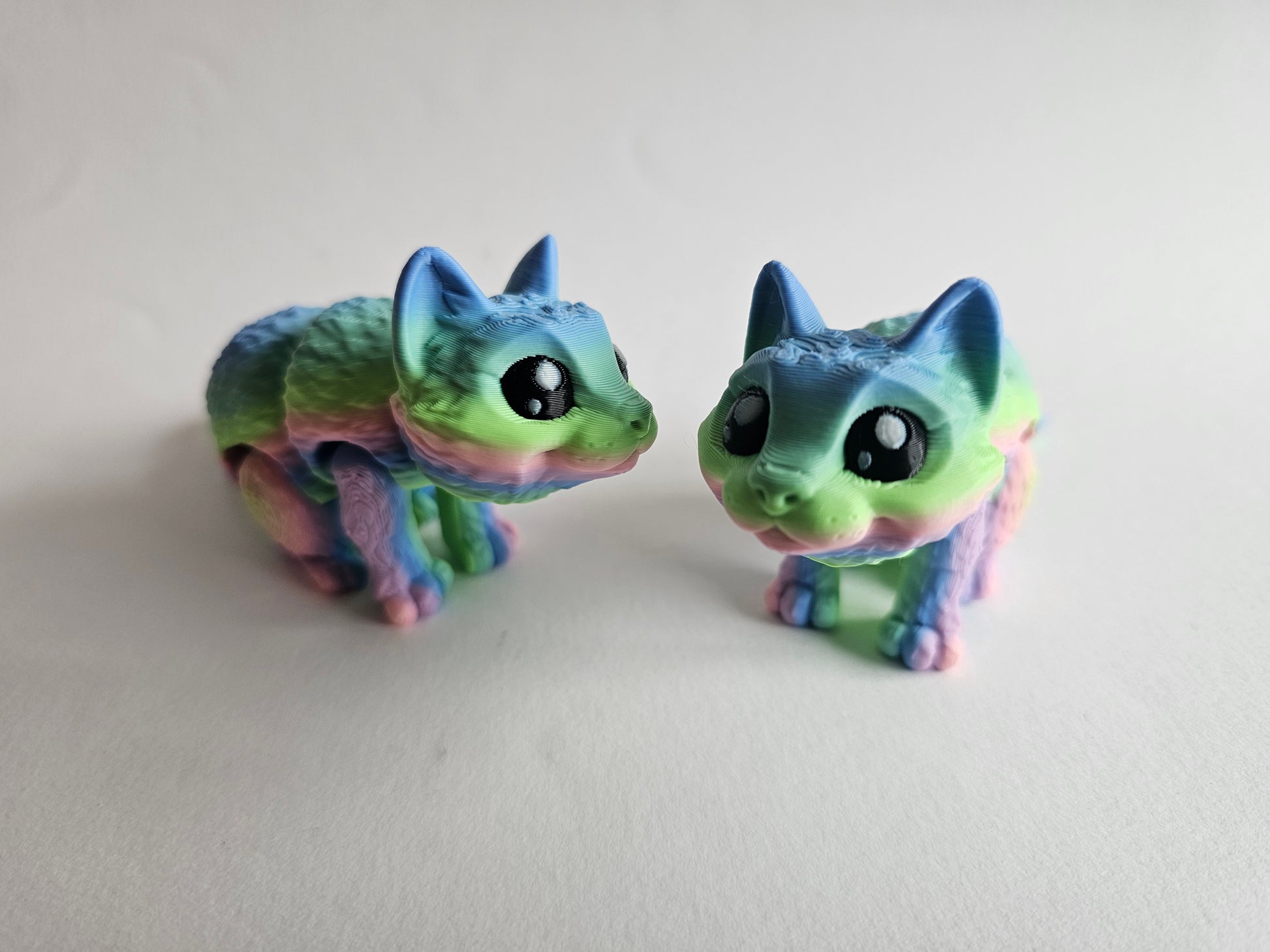 Cute cat model. Articulated legs, body tail and head. Available with either light glint eyes or slits like real kitty cats.