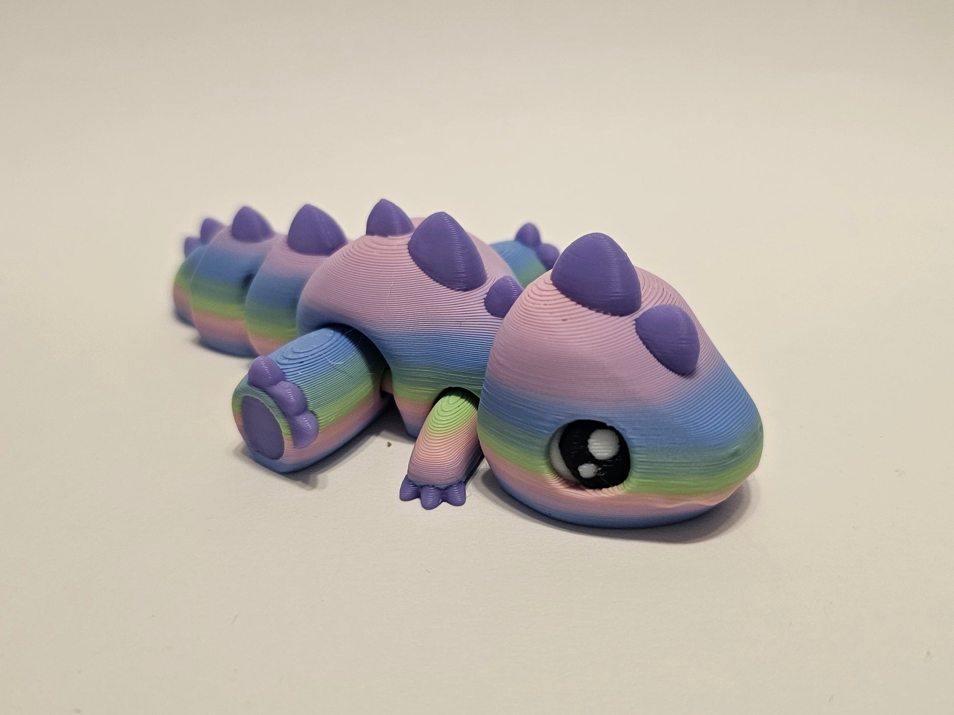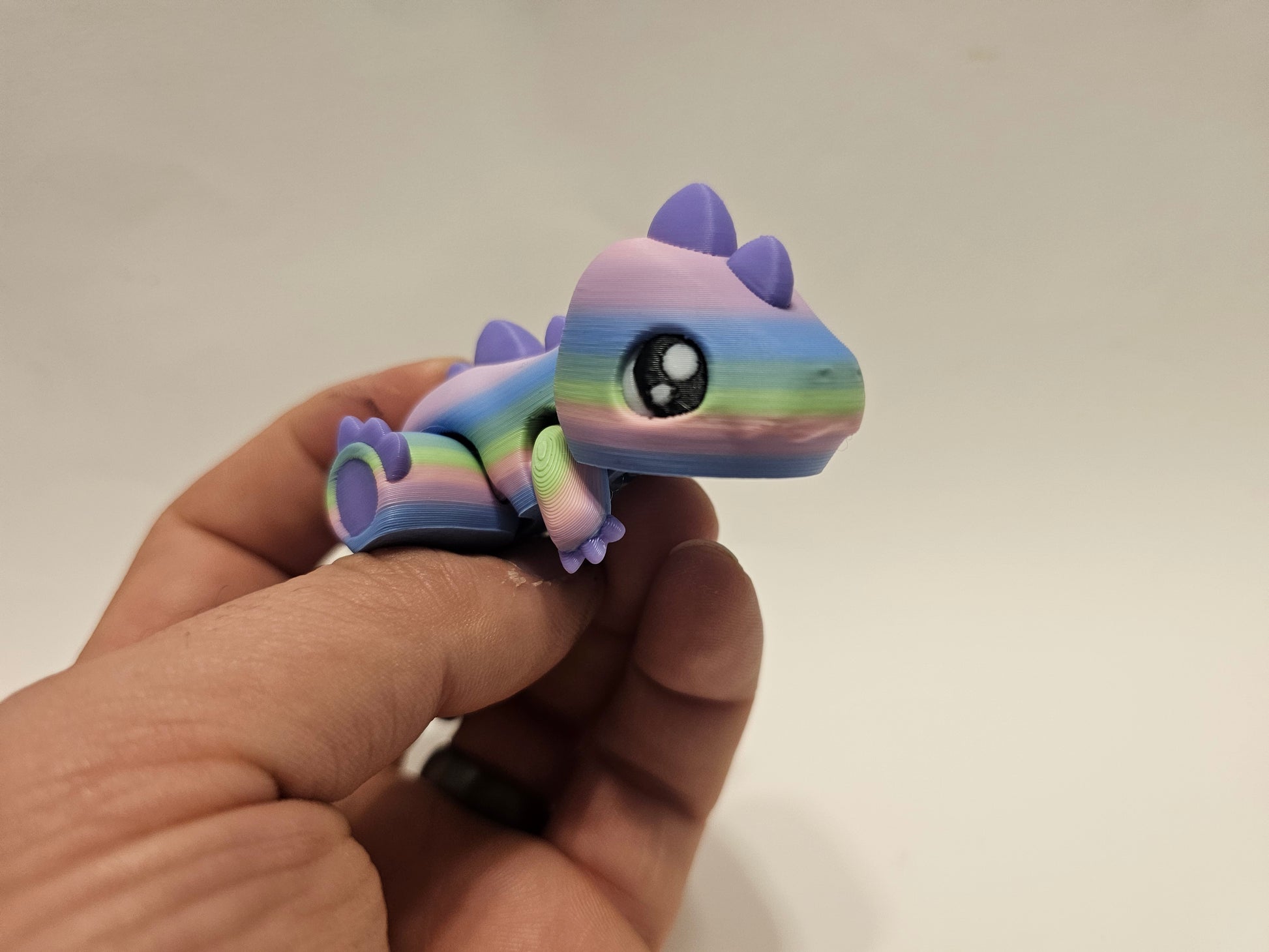 Cute little T-rex model with flexi legs, joints and tail. Can be printed with or without back spikes.