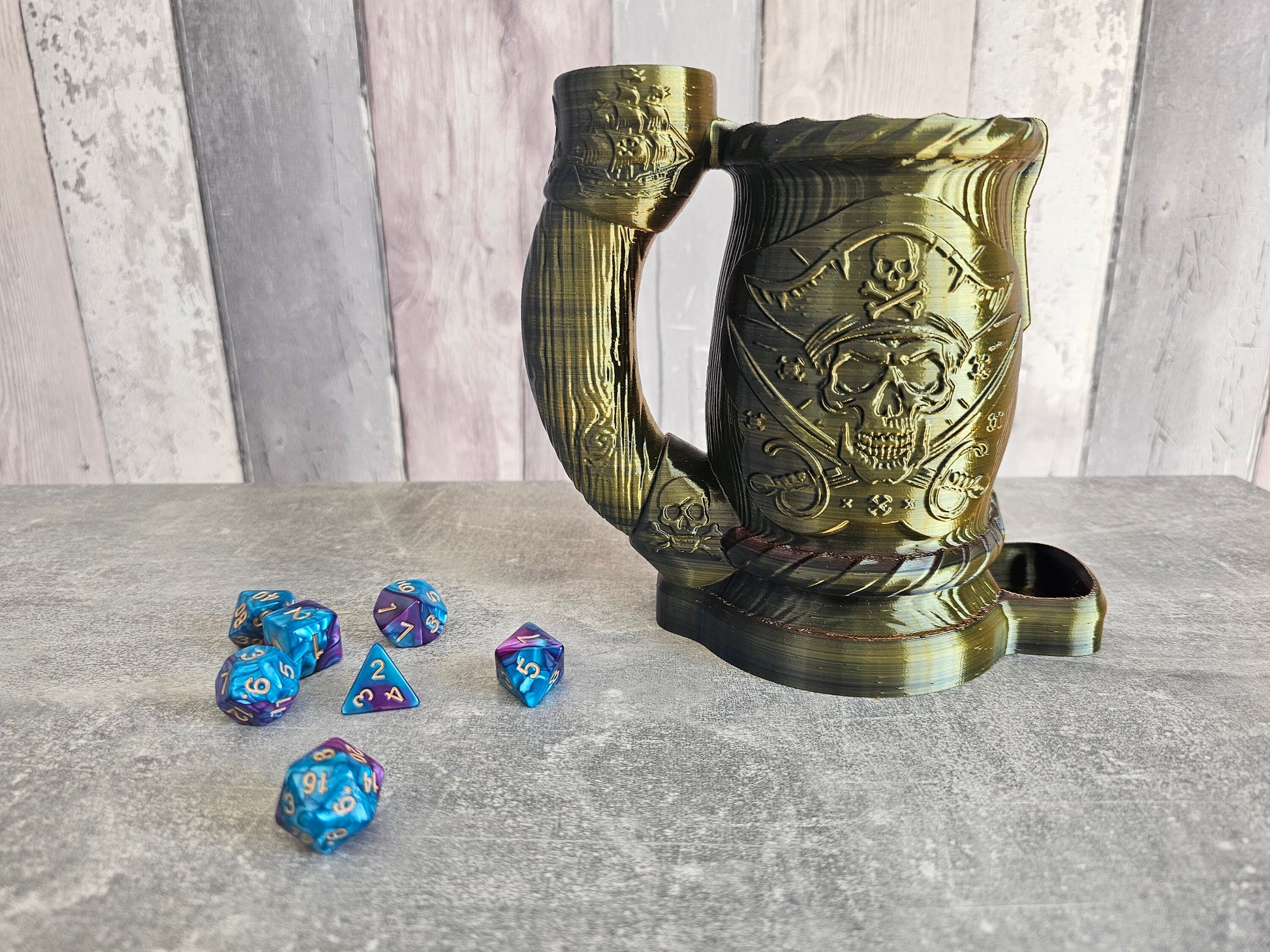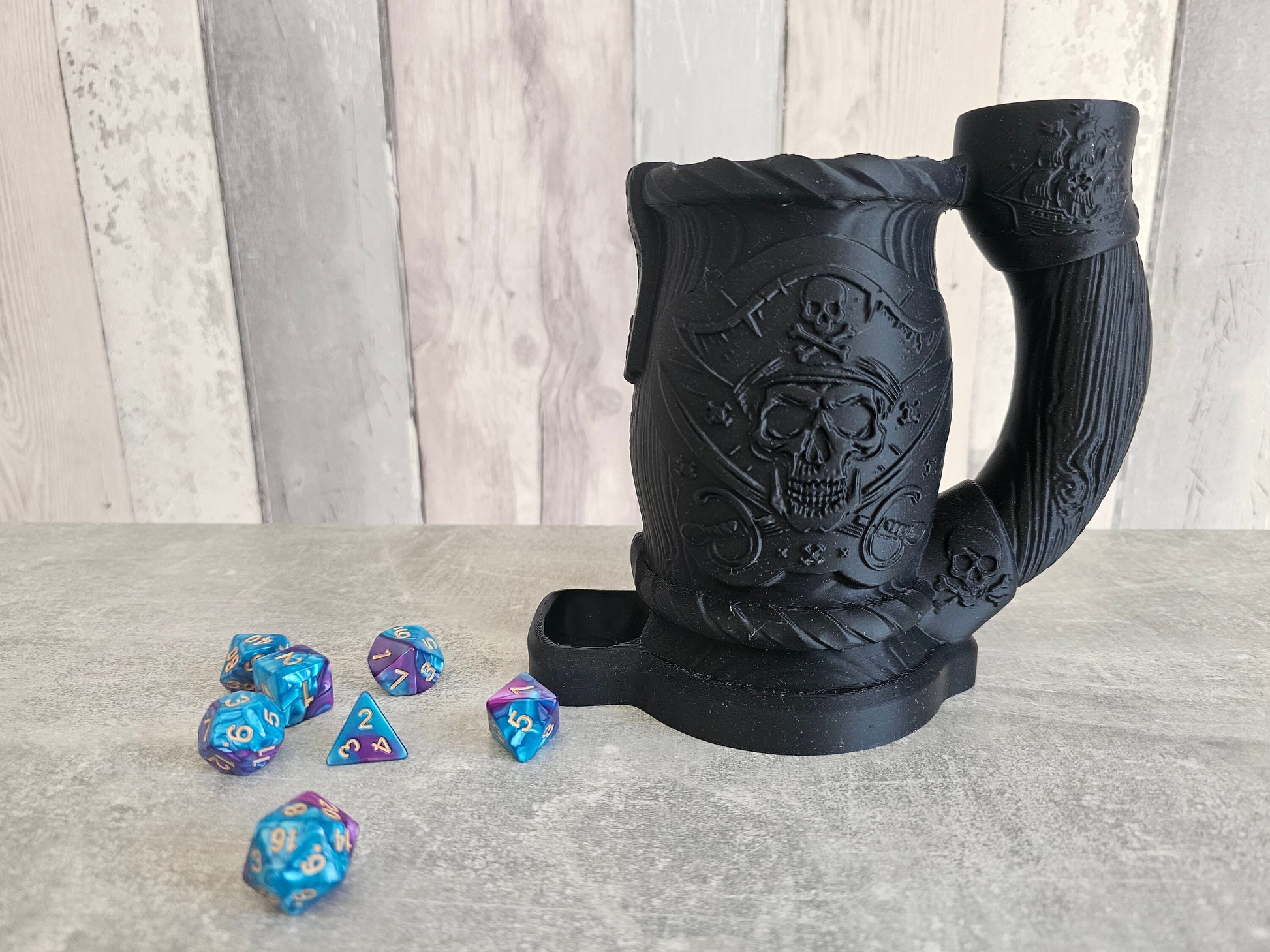 Shiver me timbers and avast me hearties. Pirate themed dice tower can holders abound. Adorned with the crest of the pirate its ready to accept your cans of juice. It may even deserve something stronger....... if you know what we mean.